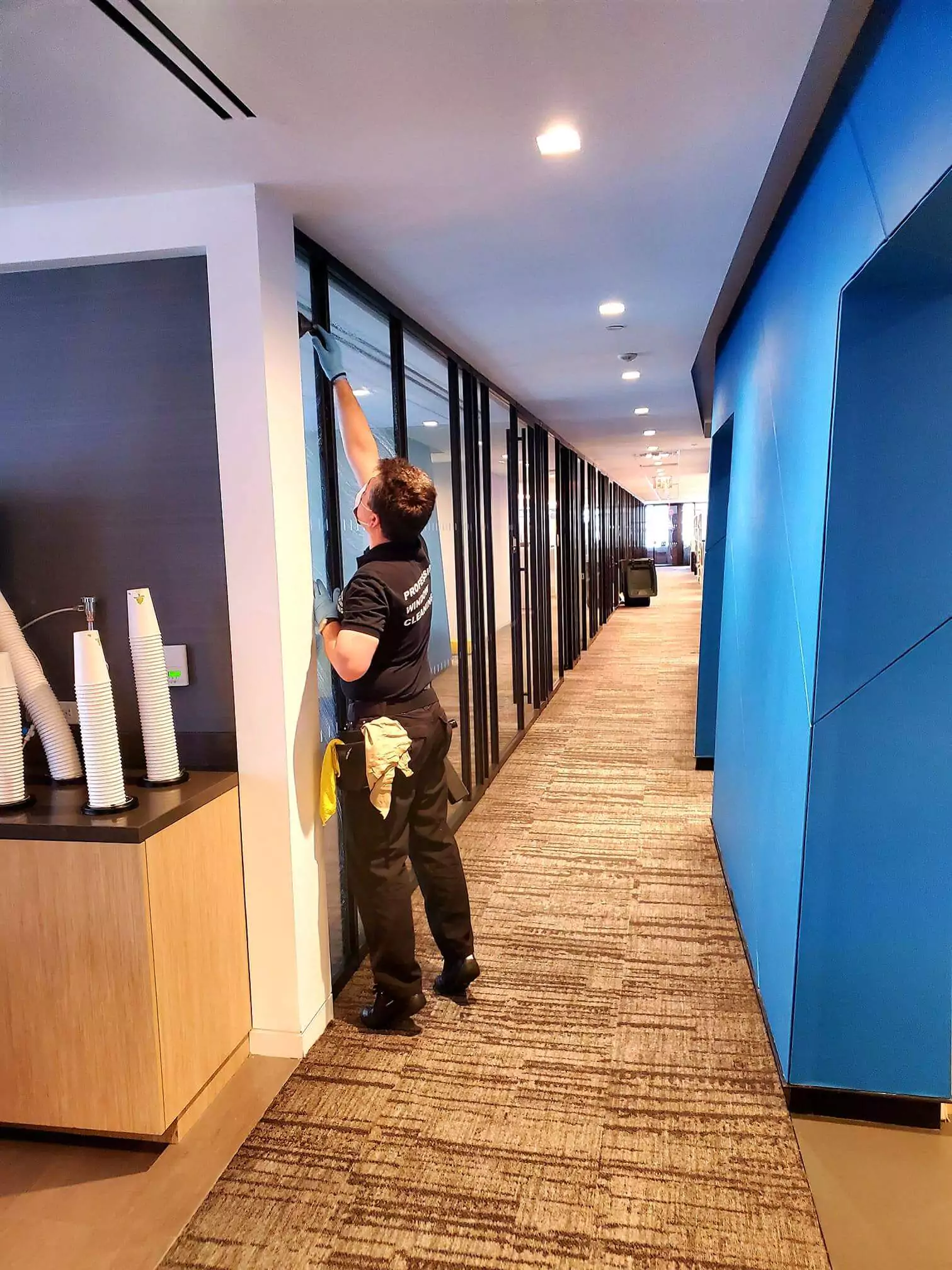 We apply water repellent glass shield to increase you storefront clean apeal up to 2X. We also provide storefront solar UV-film application as well as gratify and scratch protective films. If your storefront gets vandalized - replacement of a film is a fraction of glass replacement.